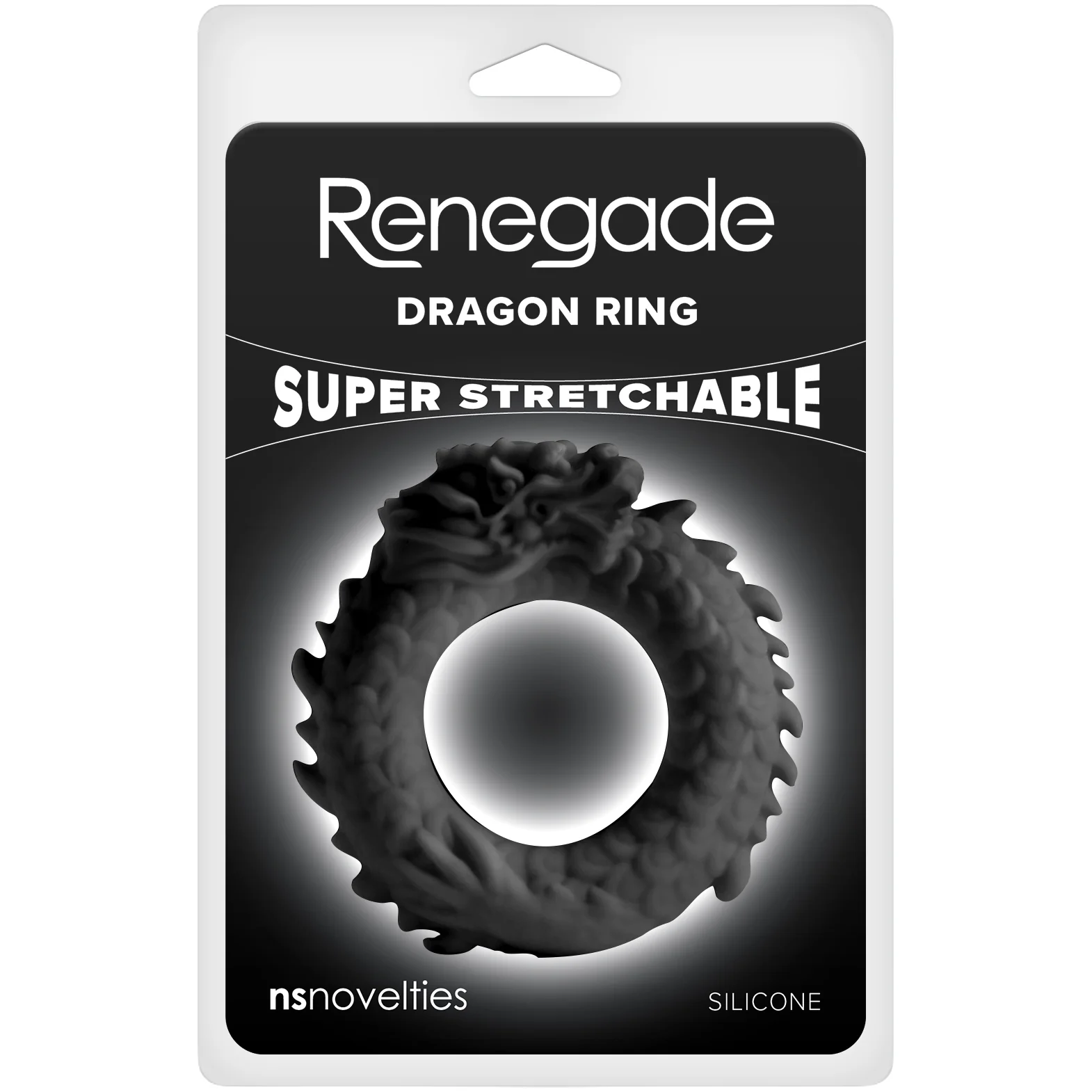 Anneau pénien Dragon Renegade. Fabriqué en silicone liquide ultra-extensible : design dragon saisissant, confortable, durable, indéformable et compatible avec tous les lubrifiants. Dimensions 7,6 x 7,5