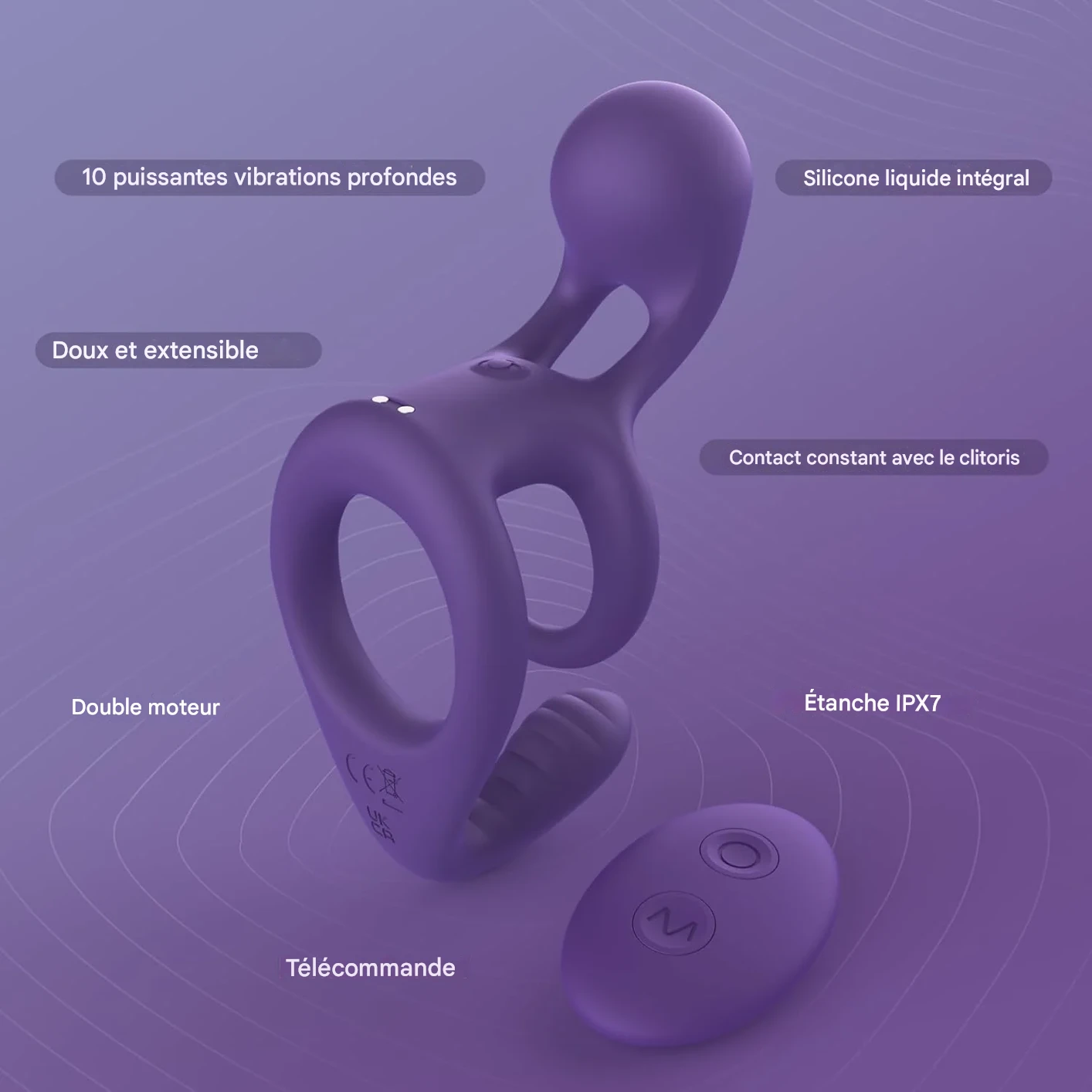 Anneau pénien vibrant avec stimulation clitoridienne