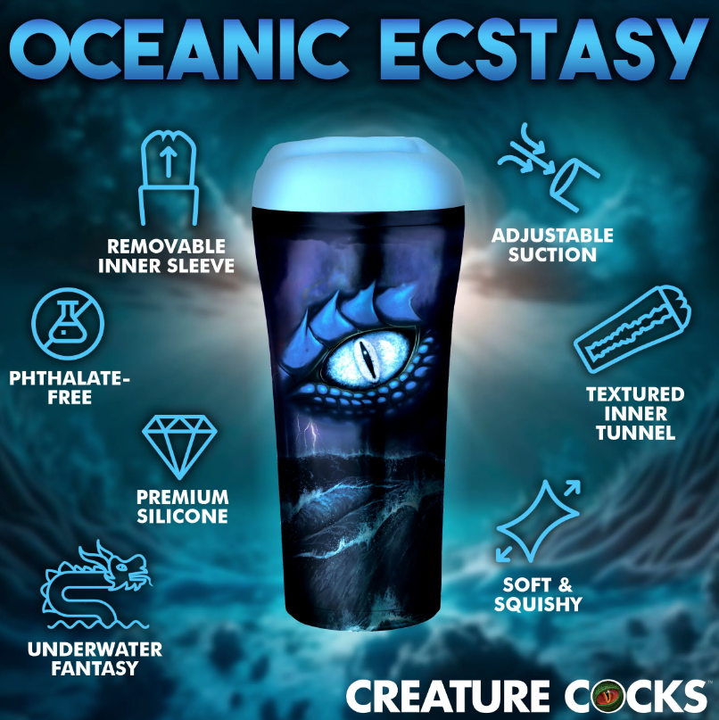 Plongez dans les profondeurs océaniques avec ce masturbateur bleu pâle inspiré des divinités marines. Son orifice étroit entouré de lèvres douces offre une entrée délicieuse et stimulante. Grâce à ses textures internes complexes, chaque pénétration devient une vague de plaisir intense et rafraîchissant.