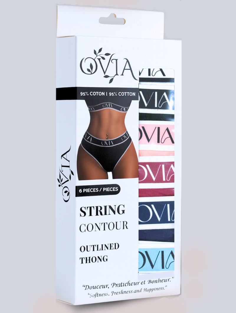Culottes Contour String OVIA boîte de 6 (Rose, Blanc, Noir, Rouge, Bleu Marine, Aqua)
