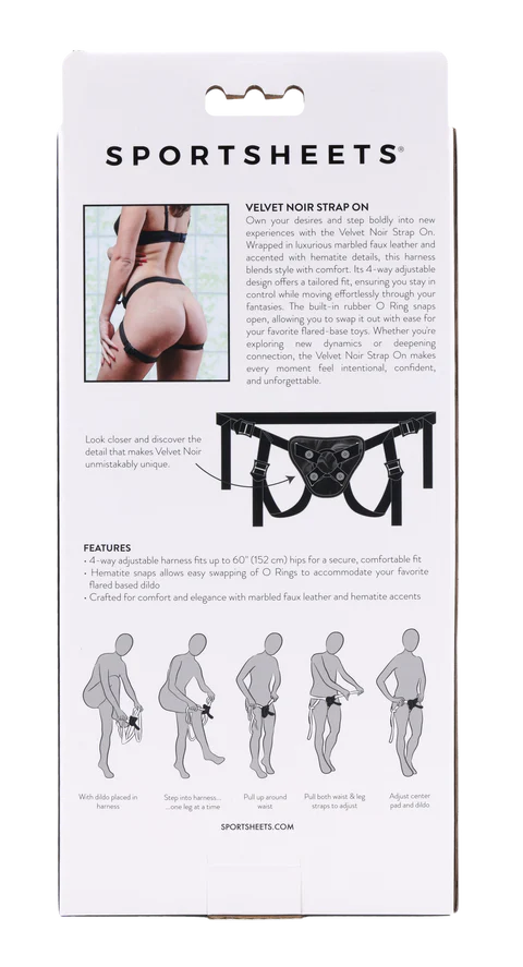 Affirmez vos envies et explorez de nouvelles sensations avec le harnais strap-on en velours. Simultanément élégant et fonctionnel, ce harnais pour dildo associe un similicuir marbré luxueux à des détails en hématite, pour un rendu raffiné et assumé. Ainsi, il s’adresse aux personnes qui recherchent un accessoire plus esthétique, confortable et fiable.