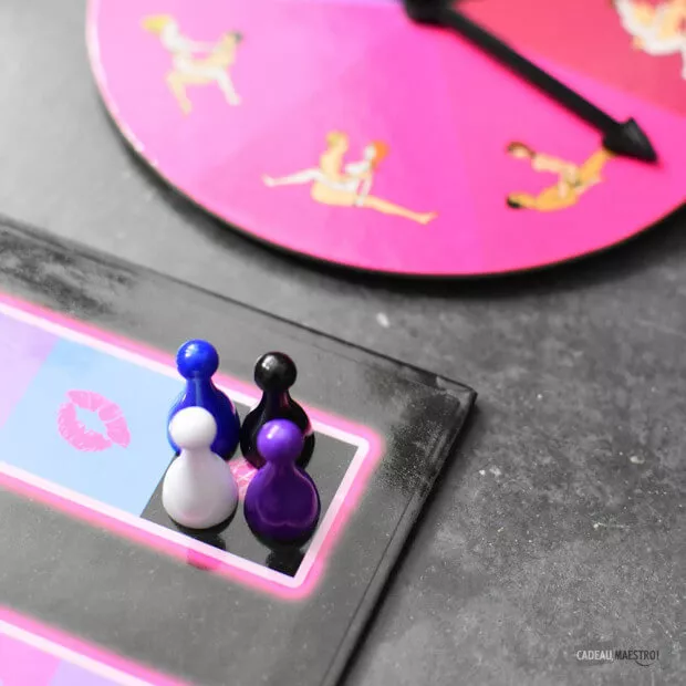 Lorsque l’un de vous atteint la case finale, la partie monte en intensité : faites tourner une dernière fois la flèche et laissez la position indiquée inspirer votre prochain moment de passion.