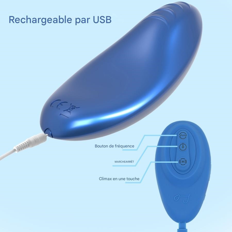 Compact, discret et facile à porter, le vibrateur de culotte portable bleu métallique