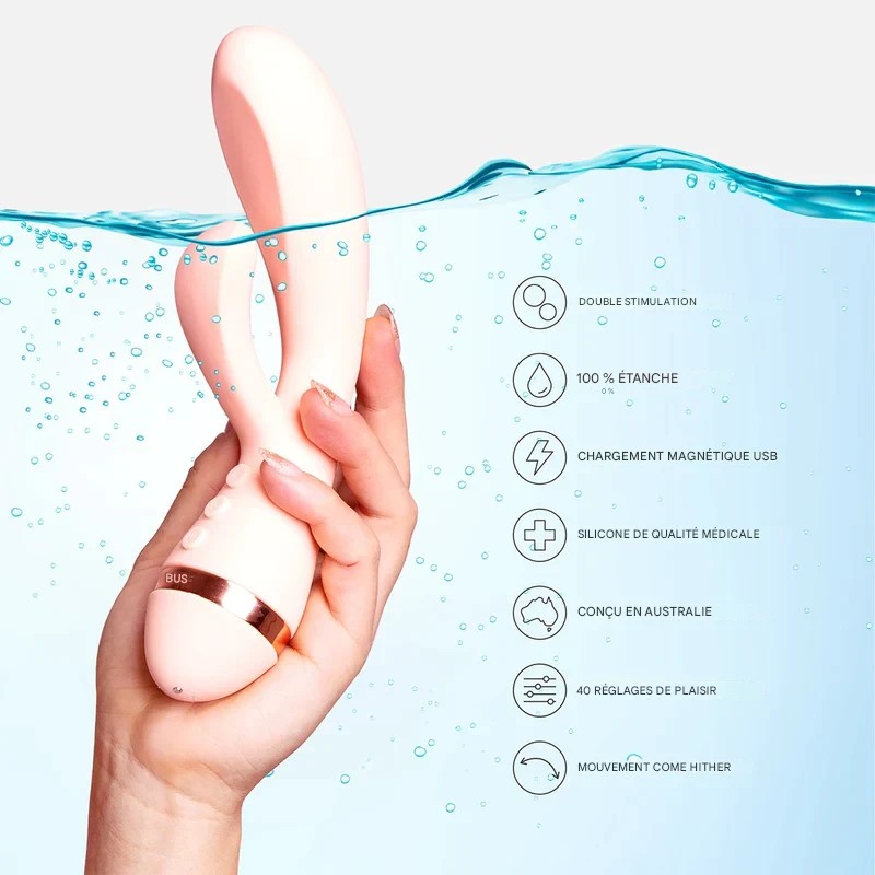 Le vibrateur double action The Muse est un vibrateur lapin haut de gamme conçu pour offrir une stimulation interne et externe simultanée, avec précision, douceur et puissance. Pensé pour accompagner toutes les explorations sensuelles, il s’adresse aussi bien à une utilisation en solo qu’aux moments partagés, tout en respectant les normes de qualité et les bonnes pratiques recommandées.