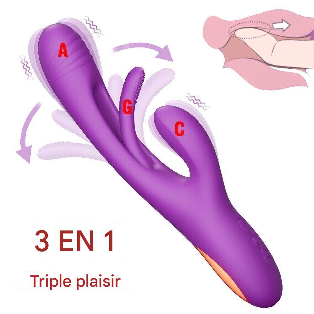 • Fonction : Vibrateur lapin à triple stimulation par battements
