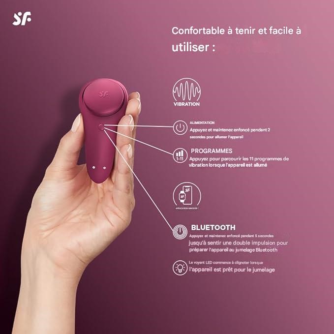 En complément de son design discret, le vibrateur pour culotte Secret et Sexy est entièrement contrôlable via l’application Satisfyer Connect, disponible gratuitement sur iOS et Android. Cette application permet de diriger facilement les modes, l’intensité et les rythmes de vibration.