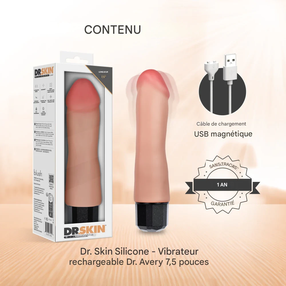 Vous cherchez un vibromasseur réaliste, alors, le vibrateur réaliste en silicone Dr. Avery est une option à considérer. En effet, il combine une tige flexible, une texture satinée et 10 modes de vibration. Ainsi, vous pouvez ajuster les sensations rapidement, tout en gardant le contrôle.