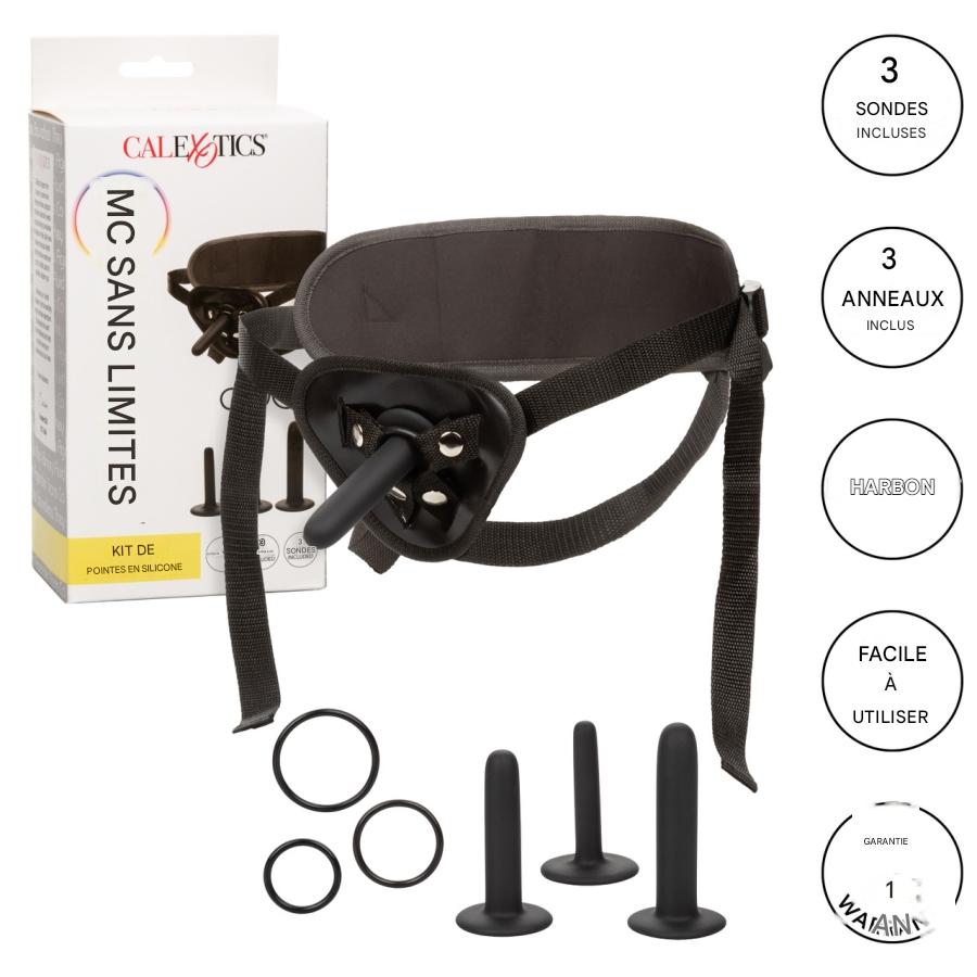 Boundless silicone anal penetration kit. With three progressive probes, an adjustable universal harness, and interchangeable rings for safe, comfortable, and controlled exploration.