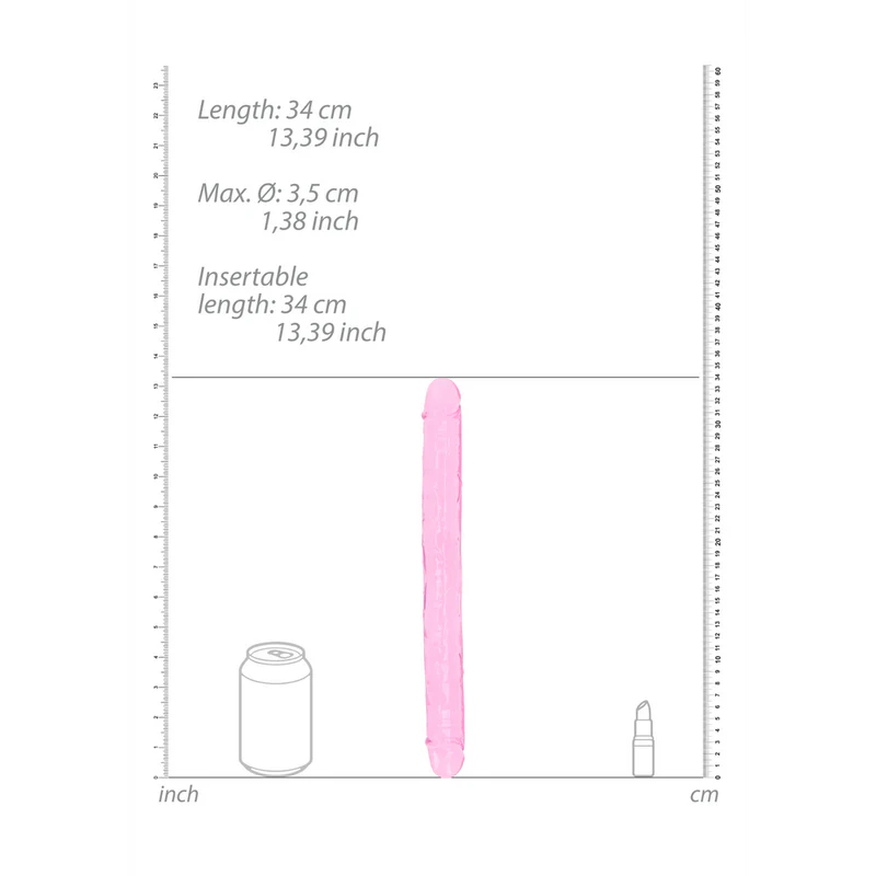 Clear double-ended dildo in 4 colors (pink, purple, turquoise, blue). With crystal-clear design and non-porous TPE. Phthalate-free and latex-free,