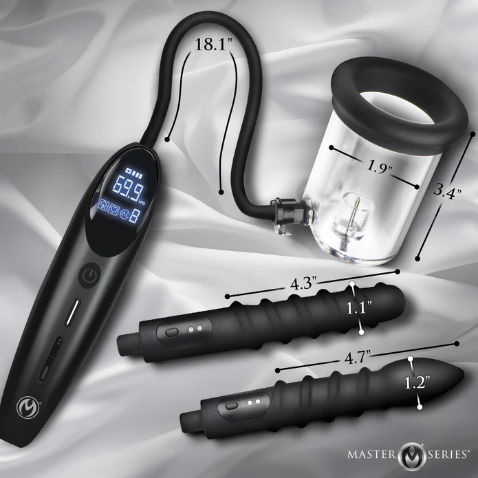 Deluxe Anal Drill Set. This premium kit is designed to explore your wildest fantasies. Combination of powerful suction, deep vibrations, and interchangeable silicone shafts.