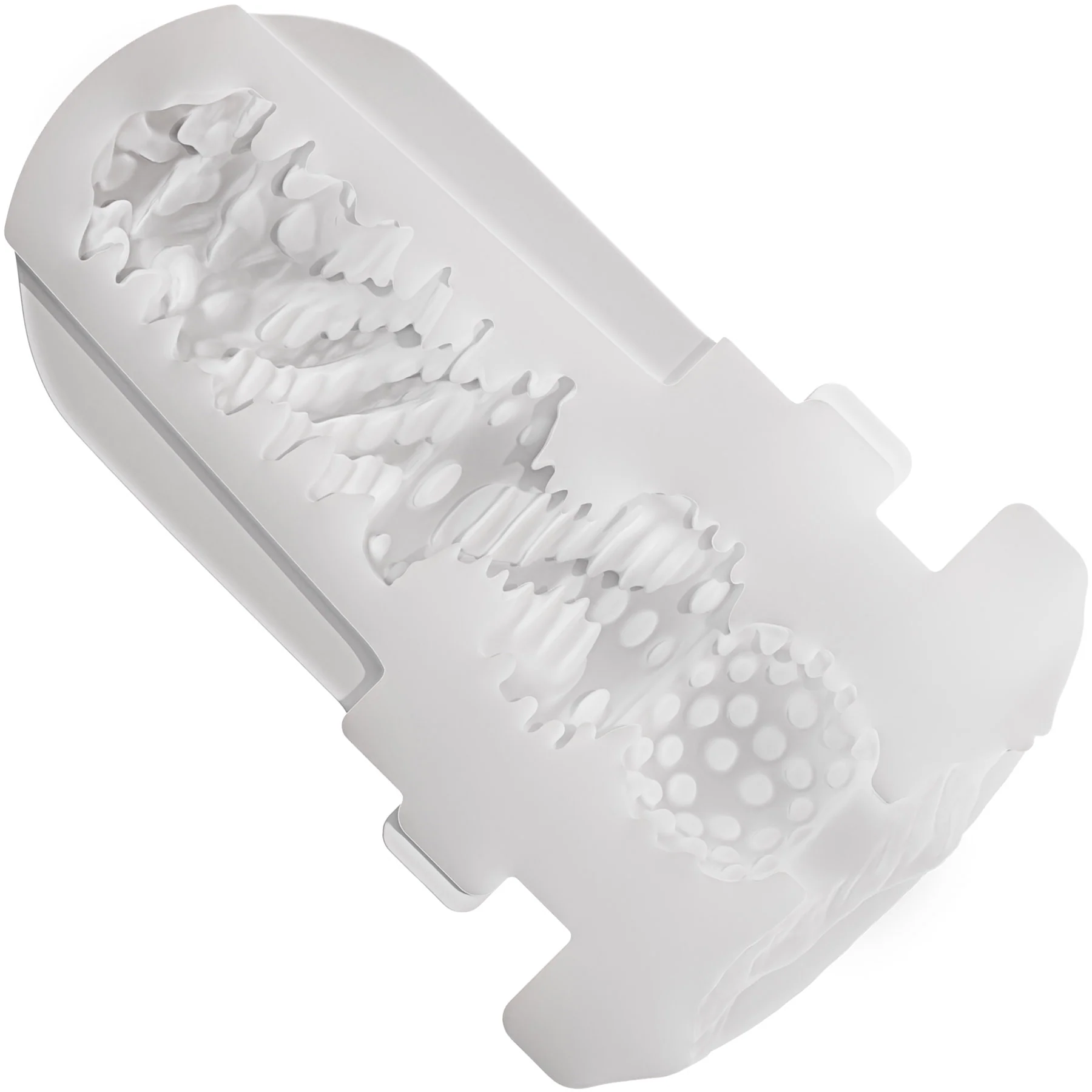 The soft, flexible TPE sleeve is designed to mimic a vaginal entry with a very realistic anatomical shape. Its extra-tight textured tunnel applies natural pressure and stimulates every centimeter thanks to its spiraling internal nubs and ridges.