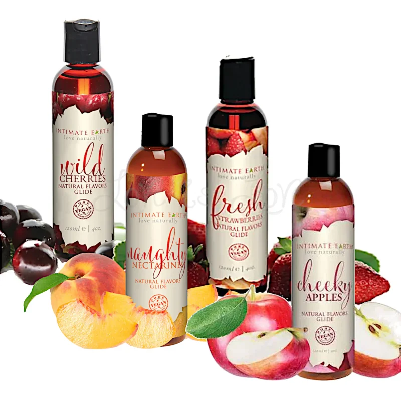 Discover the Intimate Earth Natural Flavored Lubricant 120 ml : a plant‑based, water‑based lubricant with authentic fruity flavors like strawberry, cherry, apple, and salted caramel.