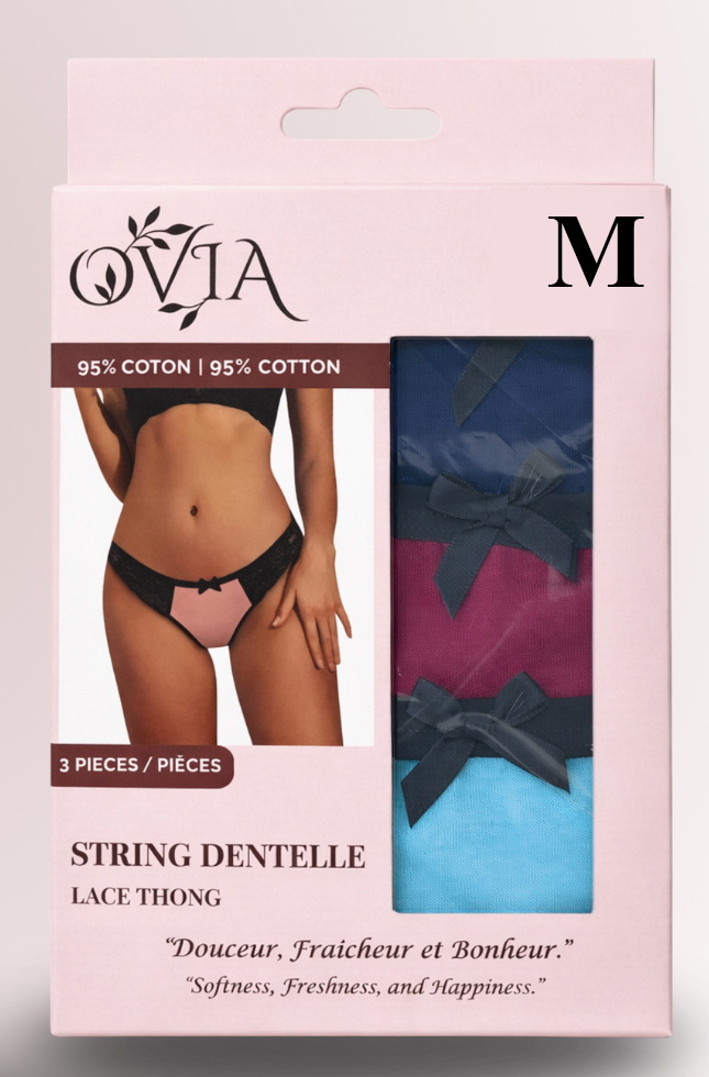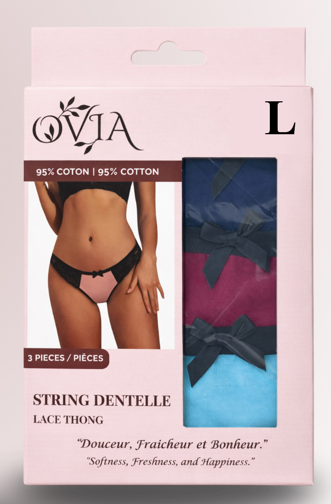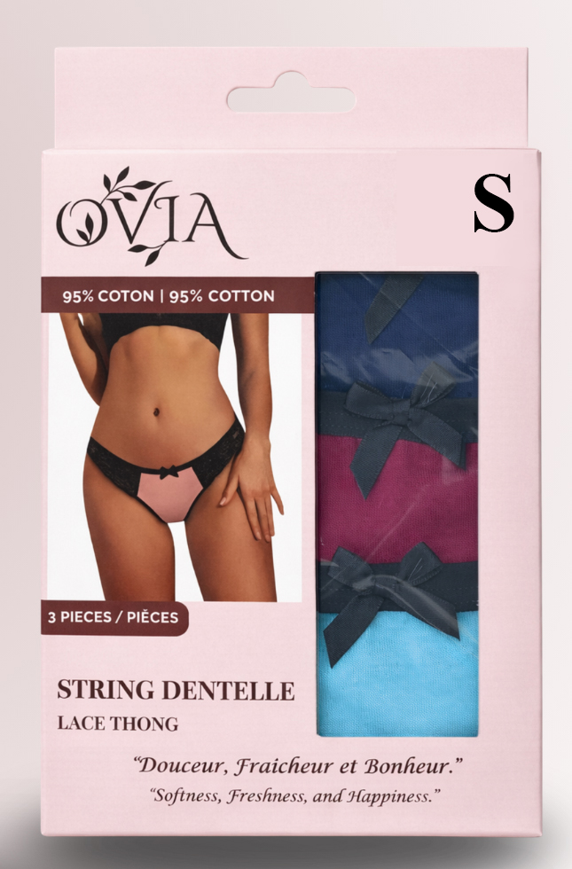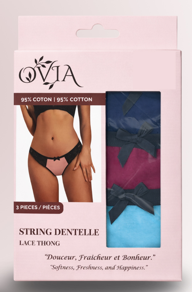 The OVIA Lace and Cotton Thong Pack of 3 embodies the perfect balance between comfort, elegance, and quality.
