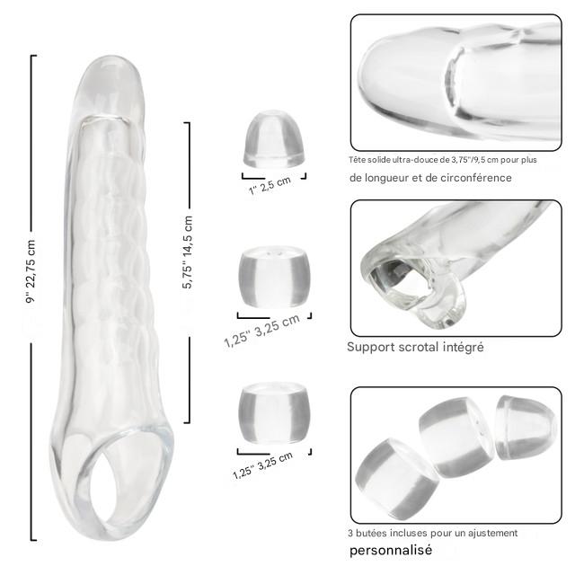 Performance Maxx™ clear extension kit. Made in hypoallergenic TPE, phthalate-free and waterproof. Adds length and girth with a comfortable, customizable fit.