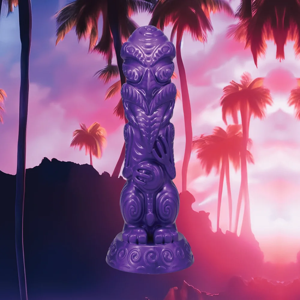 Polynesian Dildo Uhane Ino Spirit Idol in premium silicone. Sacred design inspired by Tiki, sculpted textures, powerful suction cup, and harness compatible for authentic, connected pleasure.