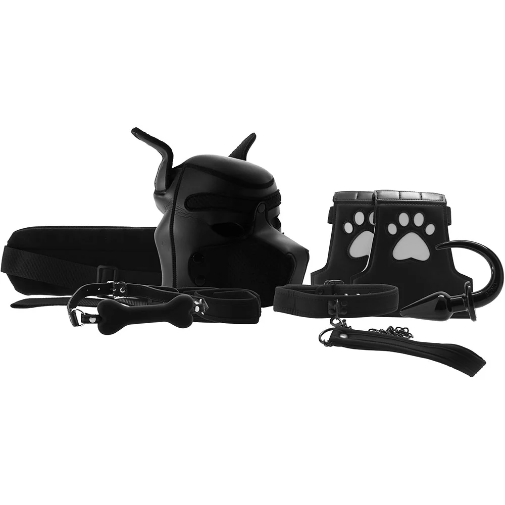 Puppy Play Bondage Kit L/XL in neoprene : with puppy hood, collar, leash, bone gag, and accessories. Ideal for BDSM, adult roleplay, and immersive puppy play.