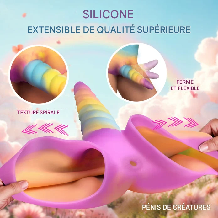 Express your mythical side and explore a new dimension of play with the Unicorn Silicone Strap-On. Both original and functional, this rainbow-colored fantasy strap-on short transforms your silhouette and sparks the imagination. As a result, it appeals to fans of role play, cosplay, and creative sex toys, while prioritizing comfort, safety, and freedom of movement.