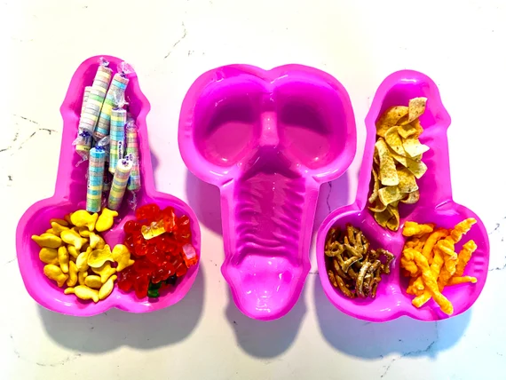 Deux plats à condiment pénis. Servez avec humour deux plats à condiment pénis lors d’un enterrement de vie de jeune fille ou d’une soirée entre filles. Aussi un moule a gelé très unique.