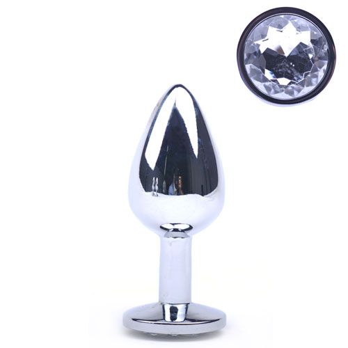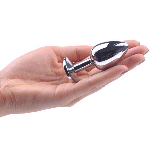Dildo anal avec bijoux diamant de grandeur petit. Dildo anal fabriqué en acier inoxydable de grande qualité avec bijoux incrusté en forme de diamant transparent. Grandeur petite. Longueur 2,75 » (7 cm). Diamètre 0,9 » (2,5 cm). Sac de rangement en velours inclus.