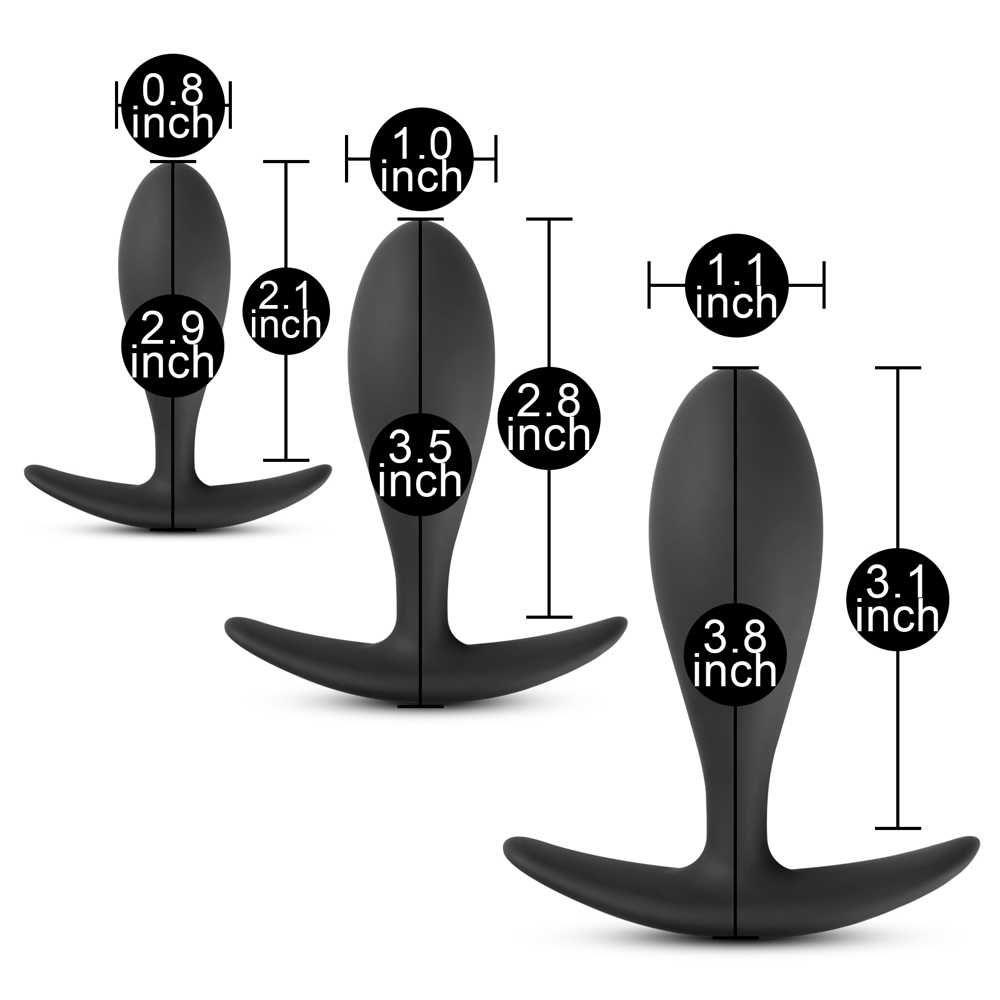 Ensemble de trois dildos anaux à petit prix. Ensemble de trois dildos anaux en silicone noir de première qualité pour ceux qui désirent expérimenter les plaisirs anaux.