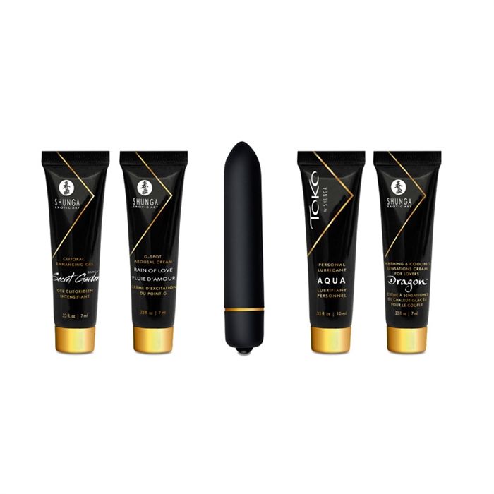 L’ ensemble Geisha Coquine de Shunga idéal pour les escapades amoureuses. Cet ensemble de petits produits vous aidera à explorer et briser tous les tabous. Rien ne surpasse le désir de découvrir seul ou en couple les plaisirs de la chair. Fait un excellent cadeau ou un bon moyen d’essayer les produits Shunga.