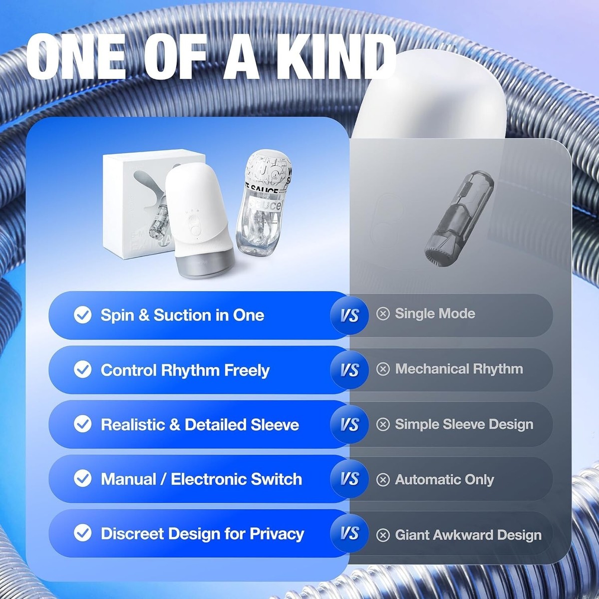 Double Stimulation Spin & Succion : Profitez de rotations bidirectionnelles et de contractions simulées qui s’harmonisent parfaitement pour une stimulation sans égale. Une combinaison gagnante qui vous offrira des sensations réalistes et intenses à chaque utilisation.