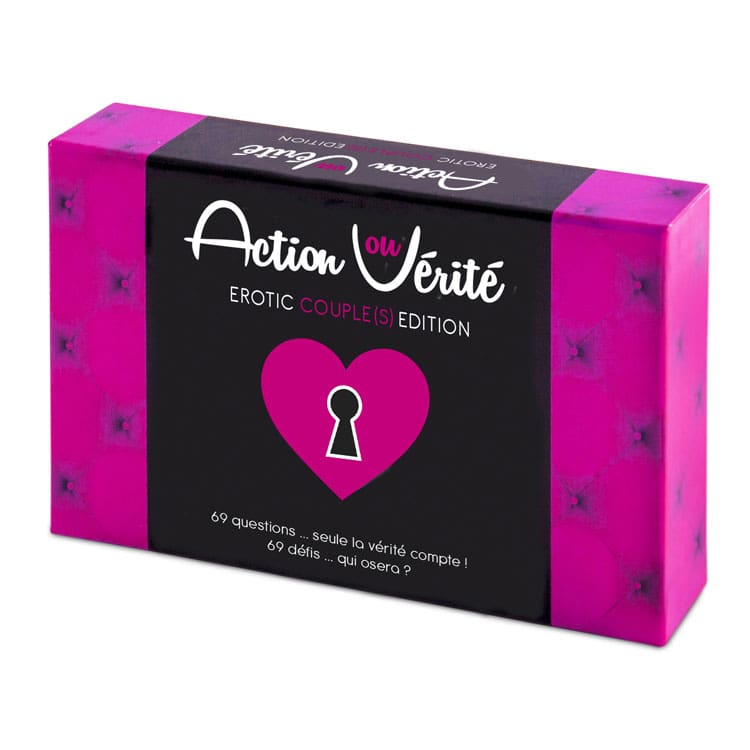 Jeux pour couple adulte Action ou Vérité. Ce nouvel Action ou Vérité contient 69 questions très intimes, et 69 défis provocants à relever. Alors, Action ou Vérité, pour les couples… Prêts à relever le défi ?