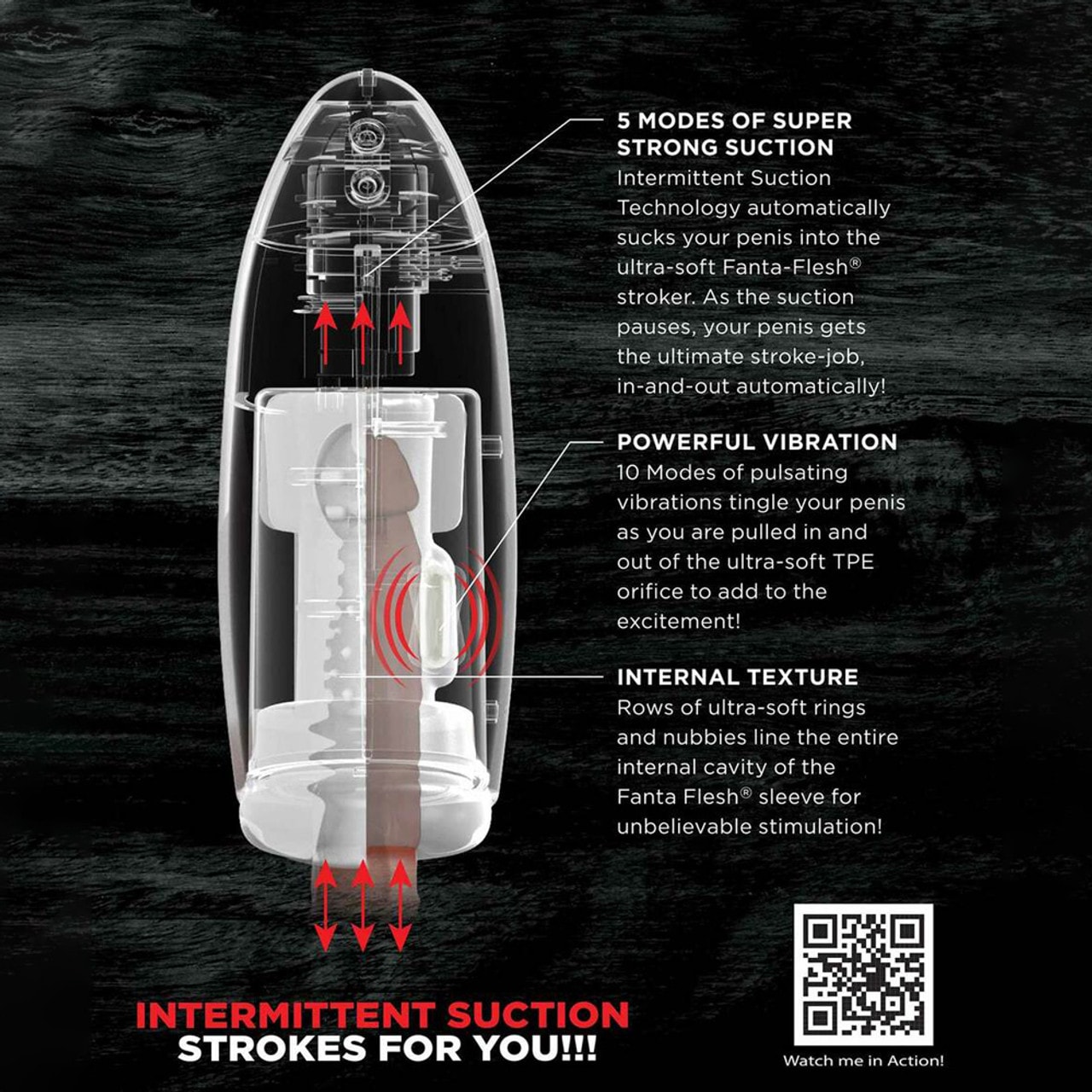 Masturbateur Fap-O-Matic avec succion. Le masturbateur Fap-O-Matic rechargeable avec technologie d’aspiration intermittente et vibrations puissantes. Imite une pénétration anale de façon très réaliste.