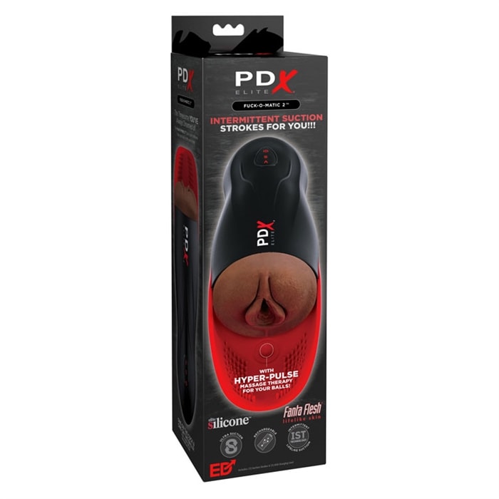Fuck-O-Matic 2 PDX Elite avec succion. Le masturbateur Fuck-O-Matic 2 rechargeables avec 5 modes d’aspiration superpuissante et 10 modes de vibration. Une tempête de sensations !