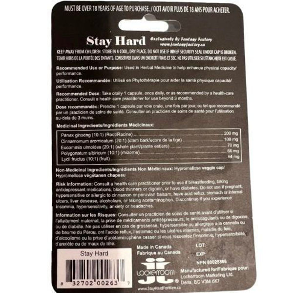 Le produit Stay Hard pour homme est autorisé pour la vente au Canada, car il détient une autorisation de mise en marché valide sous la forme du NPN 80025806.