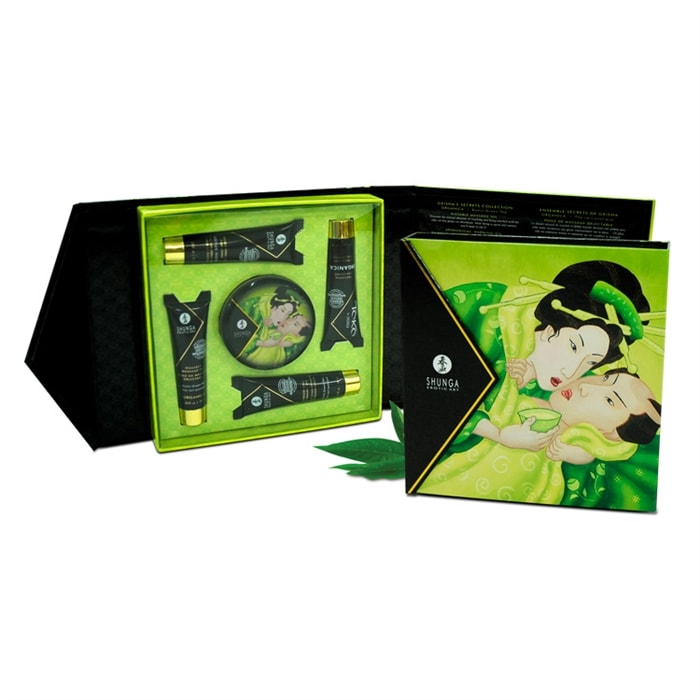 Shunga ensemble Secret de Geisha Organica. Idéal pour les escapades amoureuses des amants de la nature. Cet ensemble de petits formats contient tous les secrets pour enflammer vos moments de sensualité.