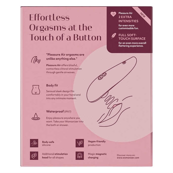 D’abord le Womanizer Classique 2 bordeaux ,discret, simple et puissant, vous permet d’atteindre l’orgasme sans effort, grâce à la technologie Pleasure Air, originale et mondialement connue.