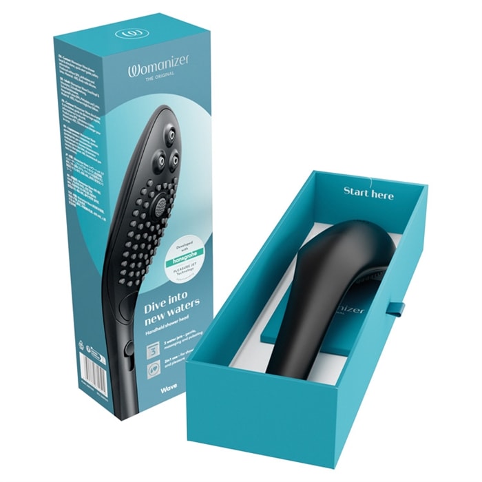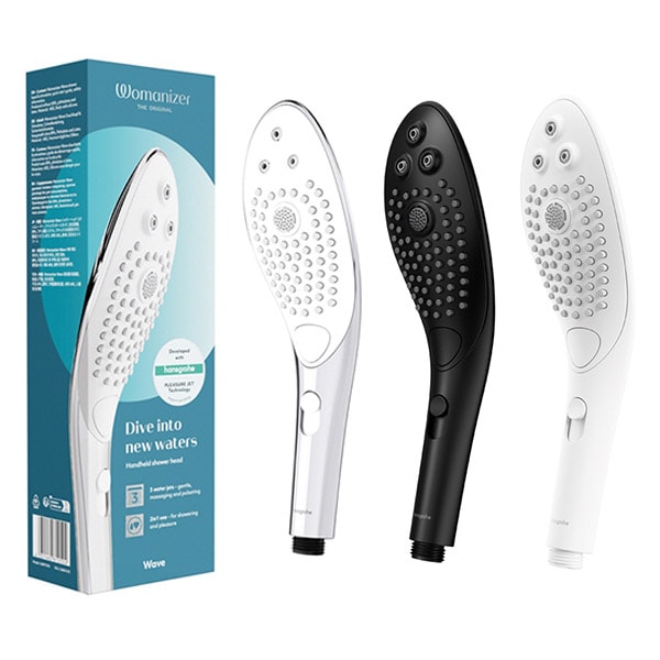 Womanizer Wave pommeau de douche choix de couleurs chrome, noir où blanc. Womanizer Wave est le tout premier pommeau de douche combiné avec un stimulateur clitoridien. Ce produit est livré gratuitement partout au Canada avec votre choix de cadeaux!