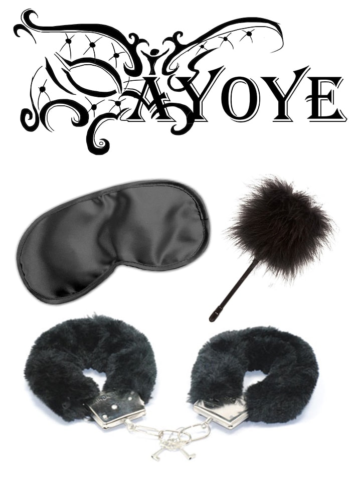 3 piece black love kit by Ayoye. Ayoye has put together a little love starter kit. In short, a perfect set with a feather tickler, a mask and handcuff with fur.
