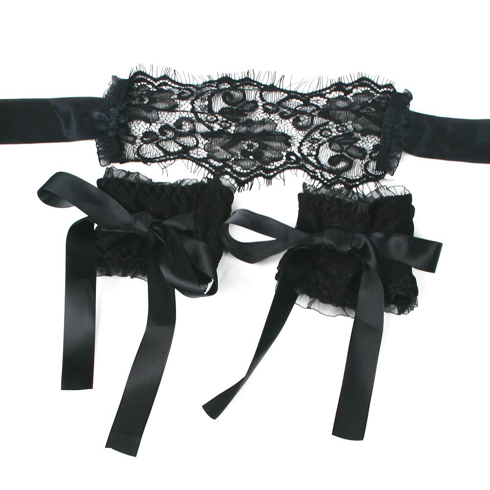Black lace mask and wrist restraint set – Soft elegance and submission