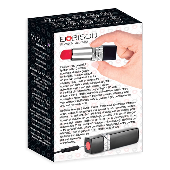 BoBisou vibrator. The BoBisou vibrator from vivilo multispeed and rechargeable in the shape of a lipstick for greater discretion! Fast and discreet delivery. This product includes free gifts and free shipping anywhere in Canada!