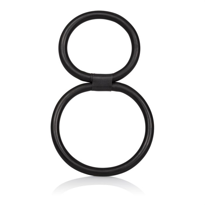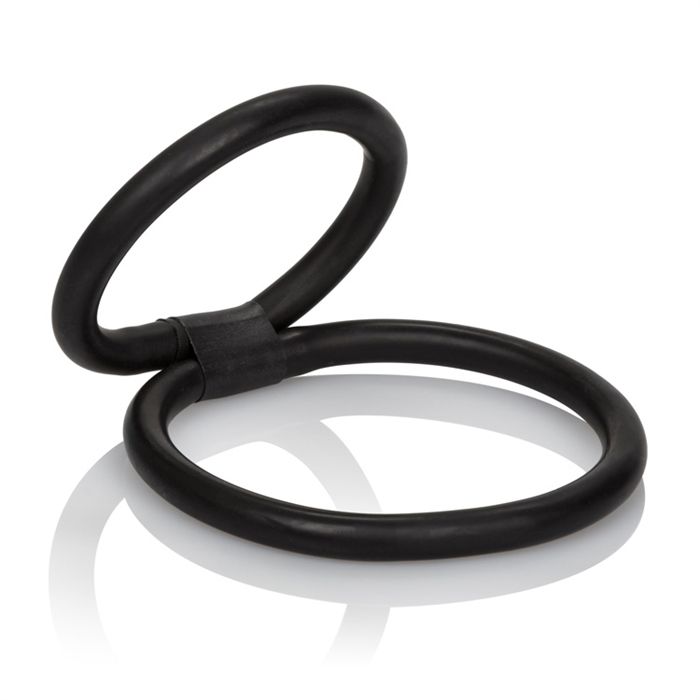 Cock ring Double Helix. Trim-to-fit quick release double erection enhancer. Rubber. 2.75”/7 cm (large ring/diameter), 2.25”/6 cm (small ring/diameter).
