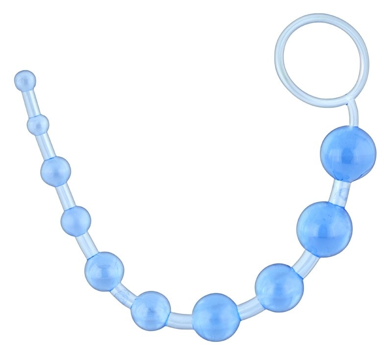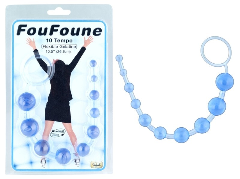 Foufoune anal beads. Anal stimulator made of jelly with 10 graduated beads. Pull-out ring. Colour blue. Length 11” (27.9cm).