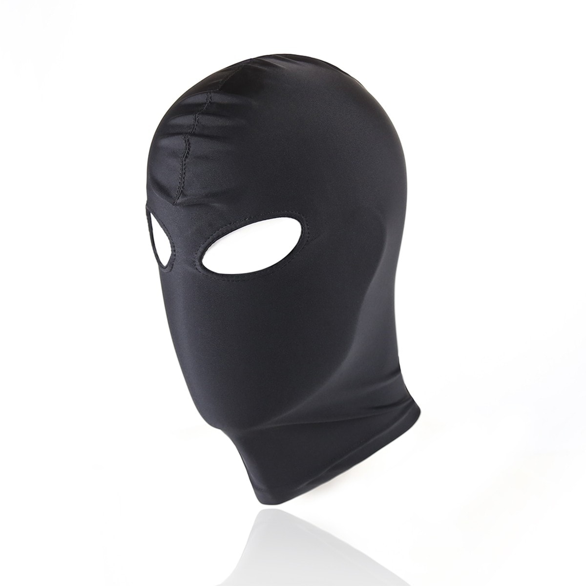 Black polyester hood with eyeholes. Leave room for imagination and domination with this black polyester hood with eyeholes.