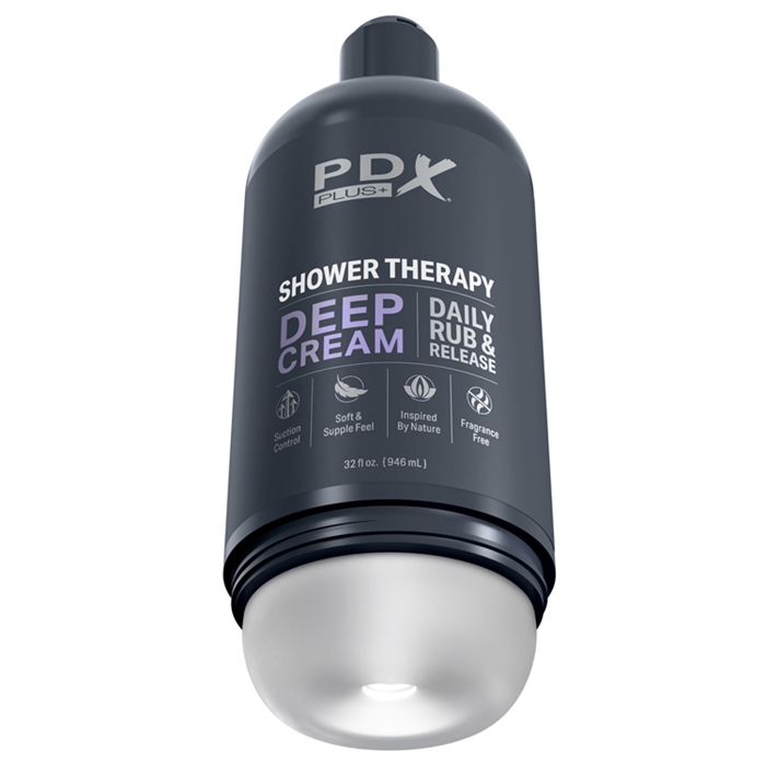 PDX Plus Shower Therapy Masturbator Frosted. The frosted PDX Plus Shower Therapy masturbator to discover intense pleasures. With a shampoo bottle shape.