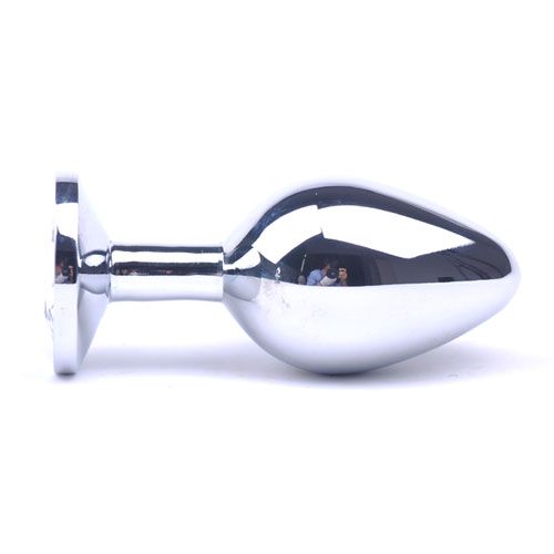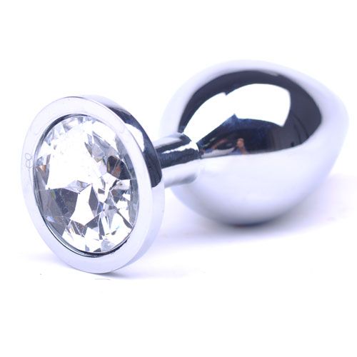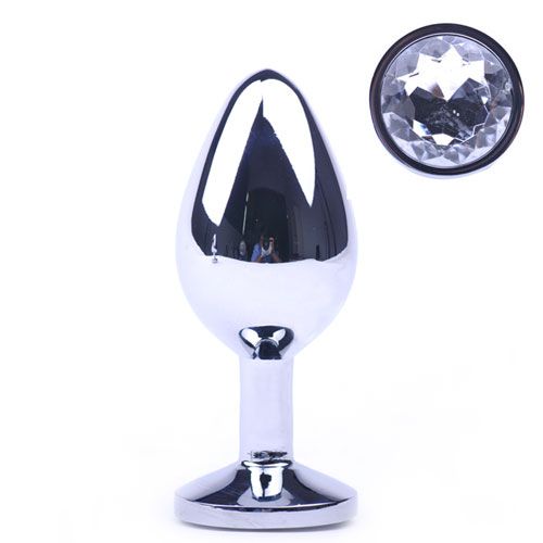 Medium anal plug with clear diamond jewelry. Anal dildo made of high quality stainless steel with transparent diamond shaped inlay jewelry. Small size. Length 3,5 ” (8 cm). Diameter 1,18 “(3,0 cm). Velvet storage bag included.