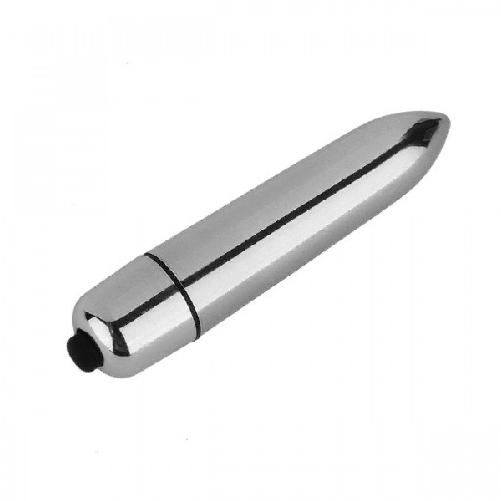 Mini silver vibrating egg with powerful vibration . Mini bullet-shaped vibrator with button, easy to hide in your handbag to always be available.