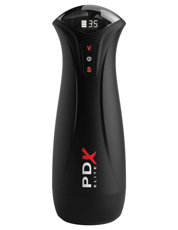 PDX Elite Fap-Gasm rechargeable vibrating masturbator. The PDX Elite Fap-Gasm Vibrating Masturbator redefines the art of personal pleasure with its unique combination of powerful intermittent suction.