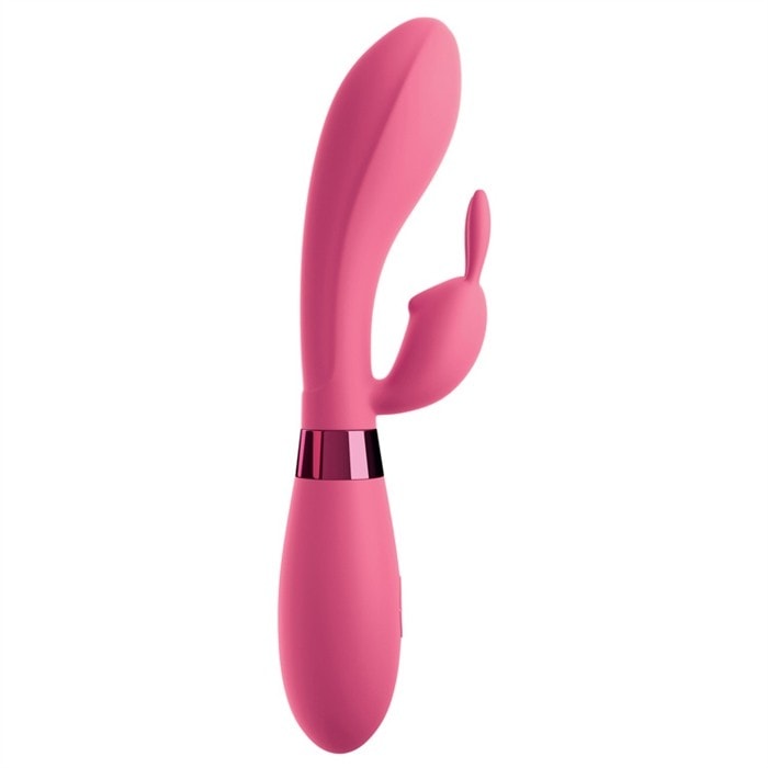 Pink silicone rabbit vibrator with OMG clitoris stimulator . The OMG rabbit vibrator is designed to pleasure you in all the right places!